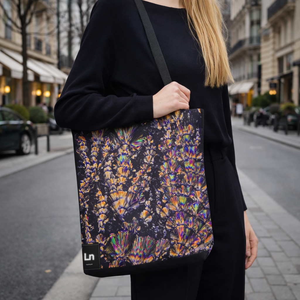 Structures cristallines de vitamine C révélées par microscopie. Impression sur tote bag au design contemporain.