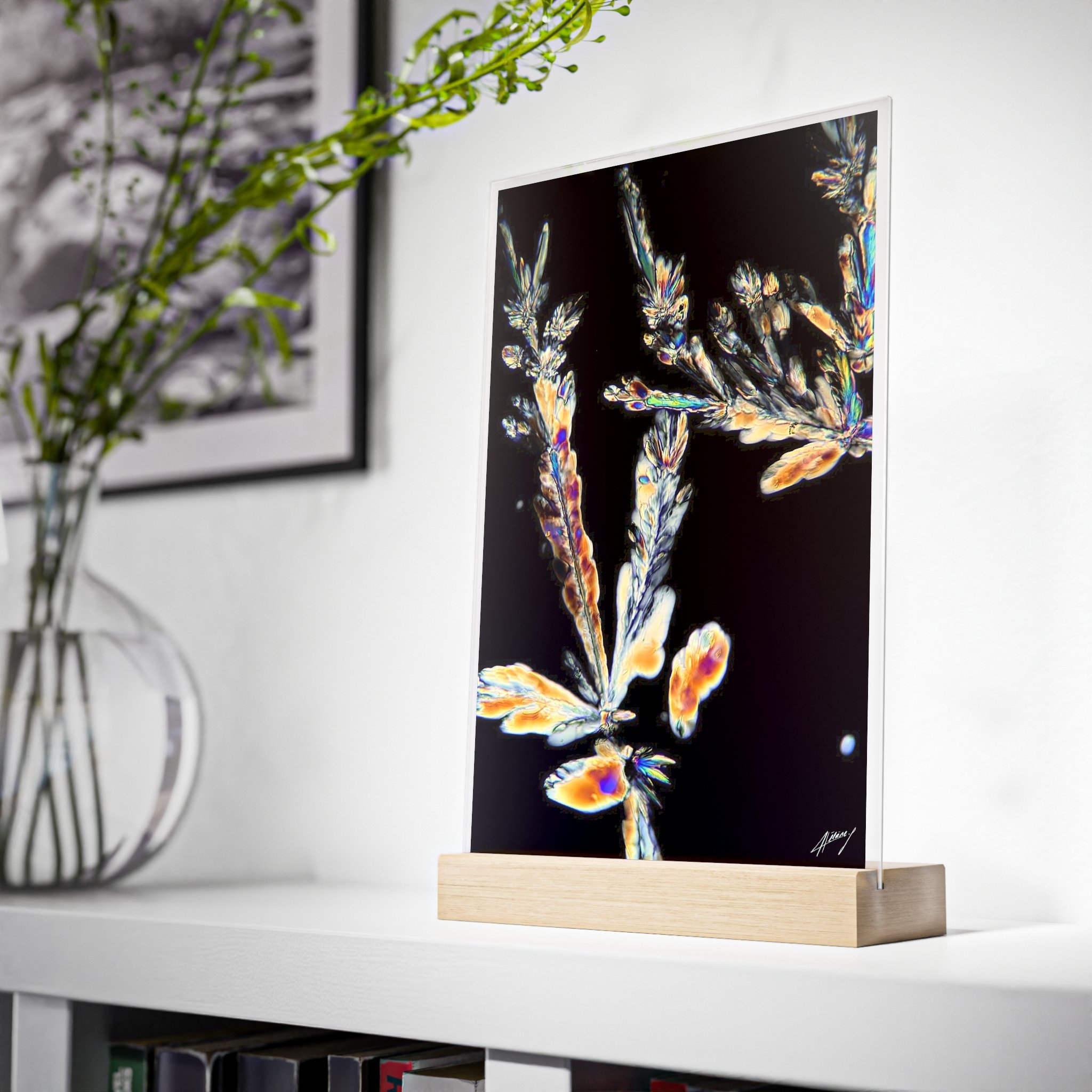 Panneau acrylique avec socle en bois : Cristaux de vin blanc Édition 1
